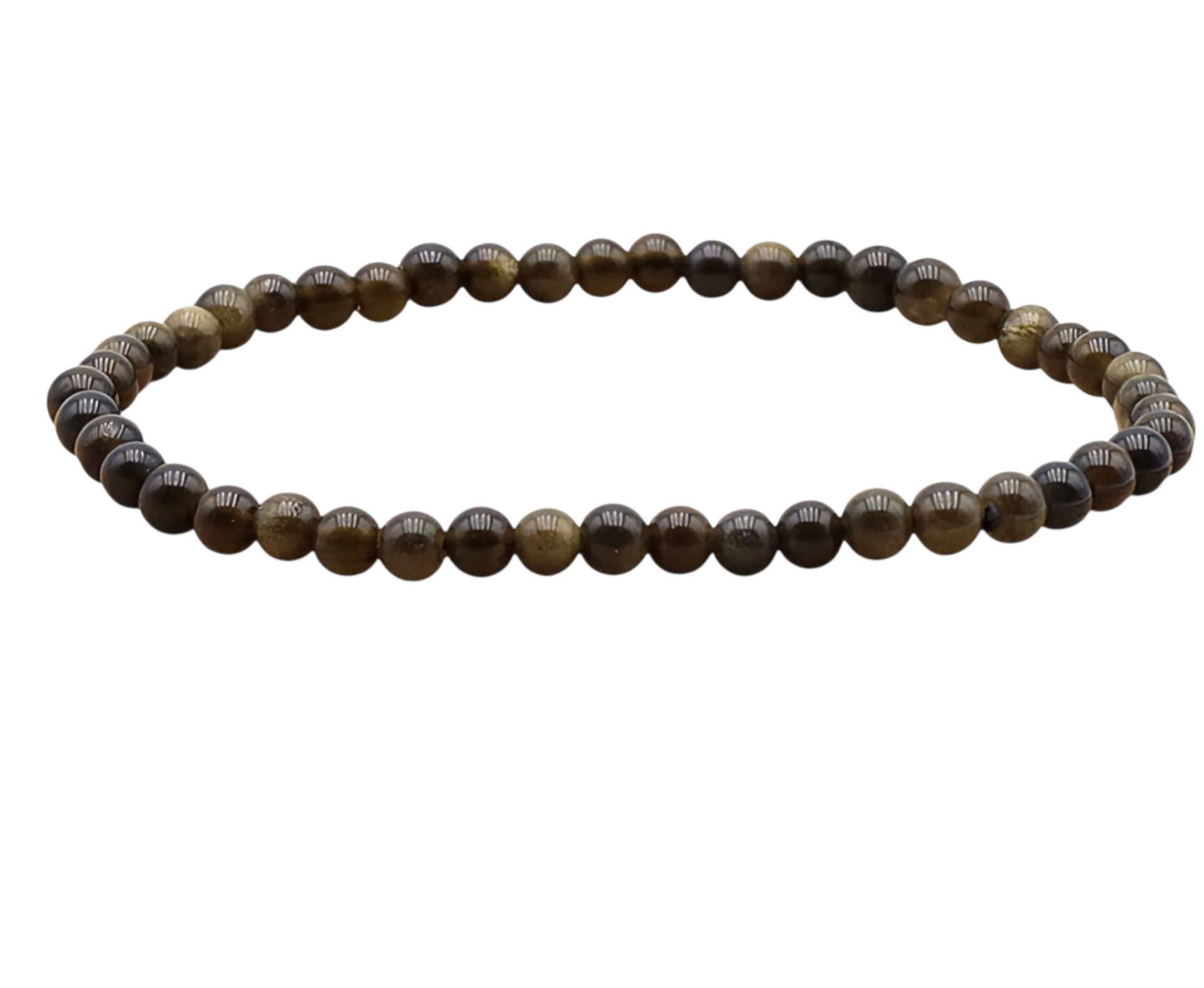 Pierre volcanique noire avec des reflets dorés, l’obsidienne dorée est une pierre de vérité intérieure, de protection puissante, et de révélation des blocages enfouis. Elle agit en profondeur sur l’inconscient.